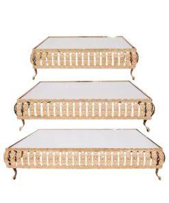 R736101 BASE P/PASTEL ORO CUAD C/ESPEJO SET 3 PZAS 25 30 Y 35 CM