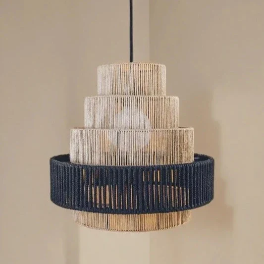 Nuestra pantalla para lámpara BALANCA. Está tejido a mano con hilo de henequén natural , fibra muy resistente en una estructura de herrería.