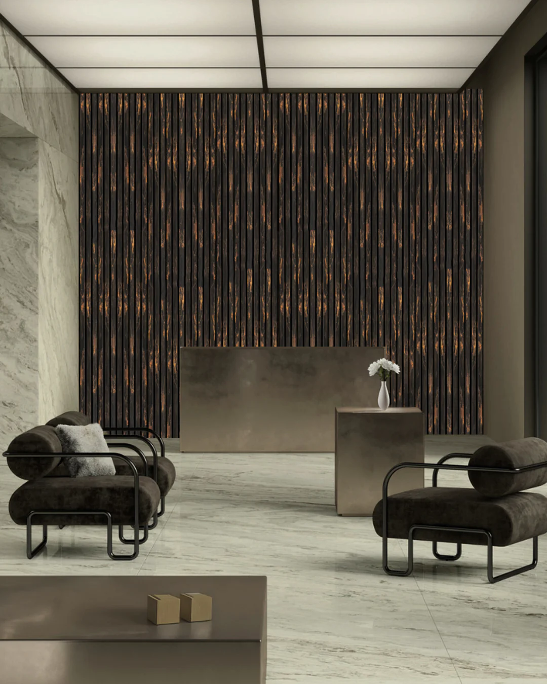 Lambrín interior craquel color vesubio. El panel para interiores está compuesto 100% de un polímero termoplástico, también conocido como cristal plástico. Es la solución ideal para revestir espacios interiores con estilo y durabilidad. La caja contiene 22 paneles, cubre un área de 2.64m x 2.90m, para un total de 7.65m².