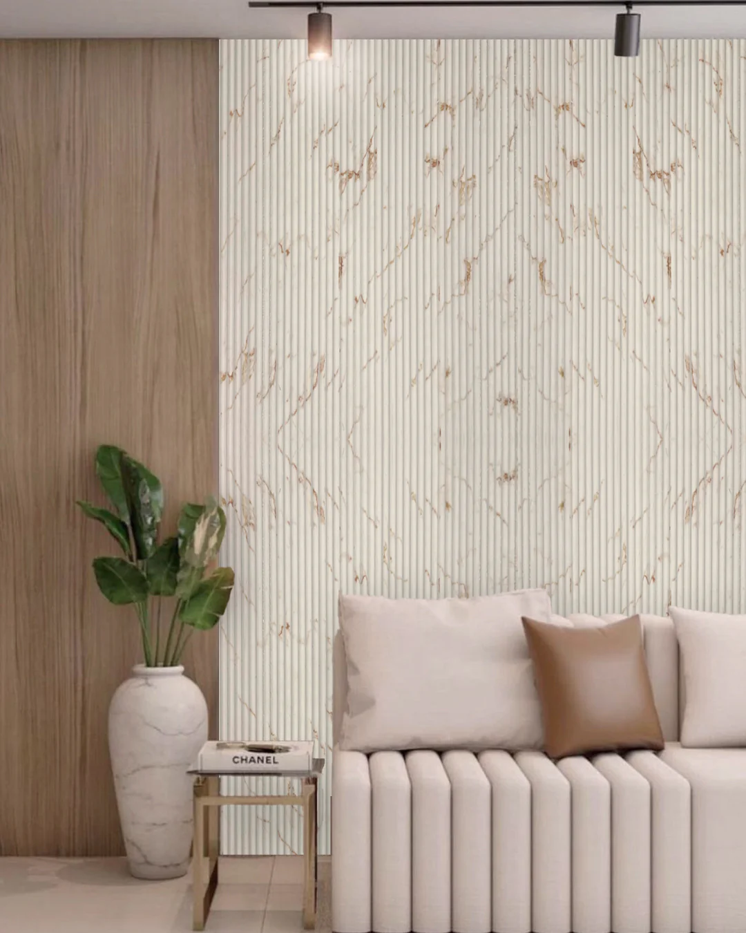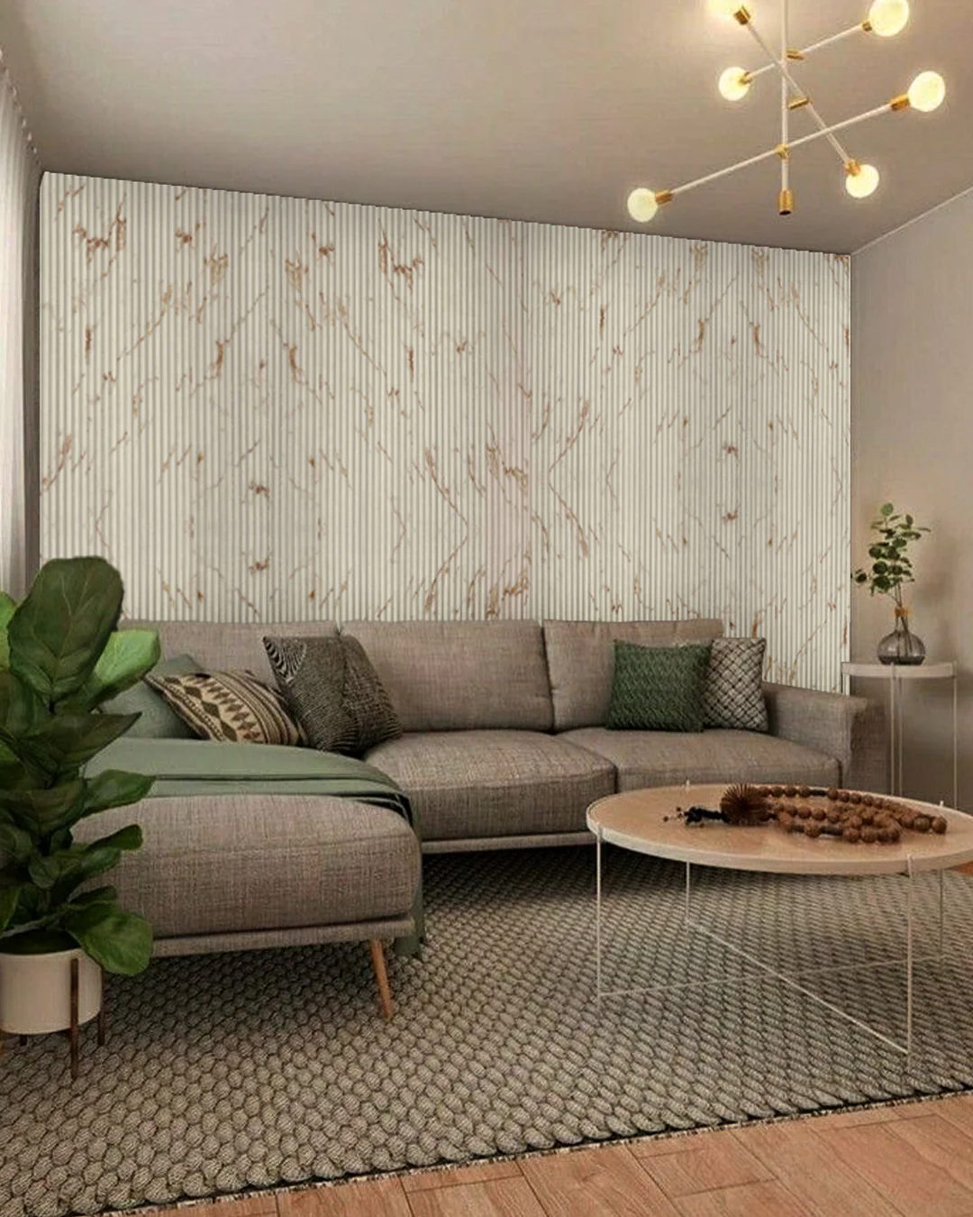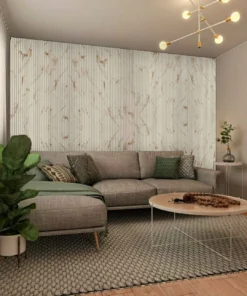 Lambrín interior zen color shanti. El panel para interiores está compuesto 100% de un polímero termoplástico, también conocido como cristal plástico. Es la solución ideal para revestir espacios interiores con estilo y durabilidad. La caja contiene 10 paneles, cubre un área de 3m x 2.90m, para un total de 8.7 m².