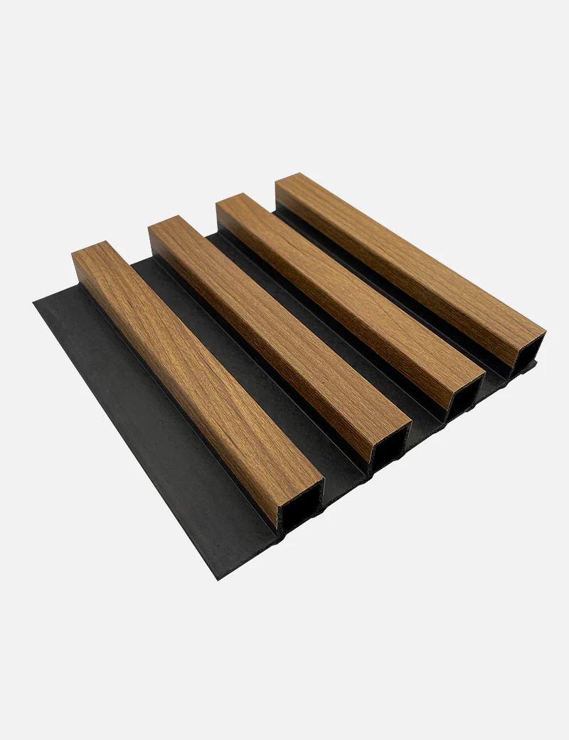 Caja WPC Lambrin Interior Color Nogal Claro Fondo Negro