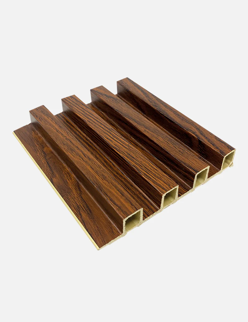 El panel WPC para interiores está compuesto por un 60% de resina de madera y un 40% de PVC, y está acabado con un revestimiento de impresión texturizado que le confiere el aspecto de la madera. La caja contiene 18 paneles, cubre un área de 2.90m x 2.90m, para un total de 8.4 m².