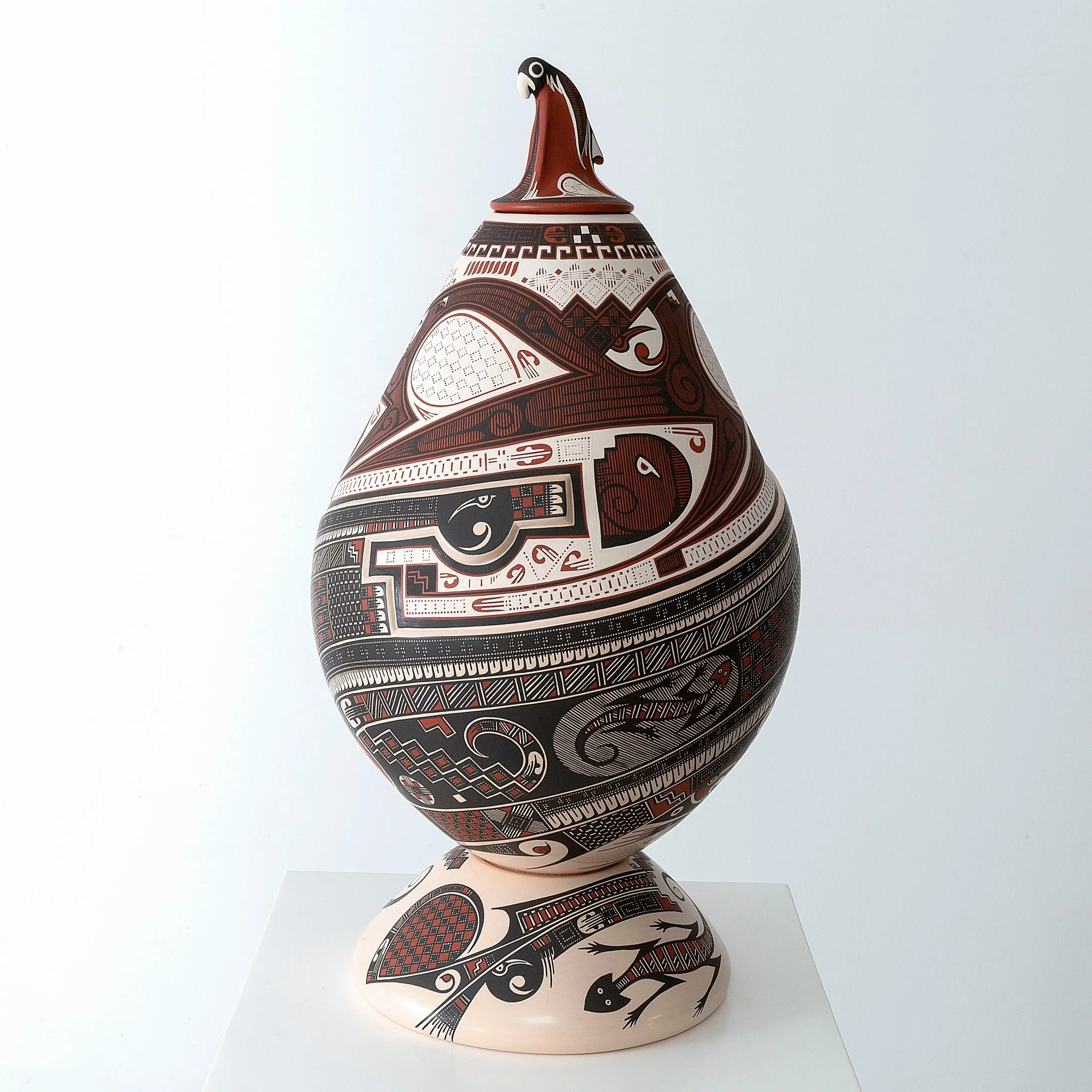 Jesús Octavio Silveira (Mata Ortiz, 1977) aprendió de su madre y padre el oficio de la alfarería, destacando muy pronto por su dedicación, alta calidad, y por la integración en sus piezas de los estilos Quezada y Porvenir. Ha sido reconocido en numerosas ocasiones en el Concurso Anual de Cerámica en Mata Ortiz, destacando en la categoría “Premio a la Excelencia” en 2019. A través de la Casa de las Artesanías, fue comisionado por el Gobierno del Estado de Chihuahua para producir una pieza cerámica para el Papa Francisco en su visita a México en 2016, obra que realizó en colaboración con Griselda Ortiz Martínez.