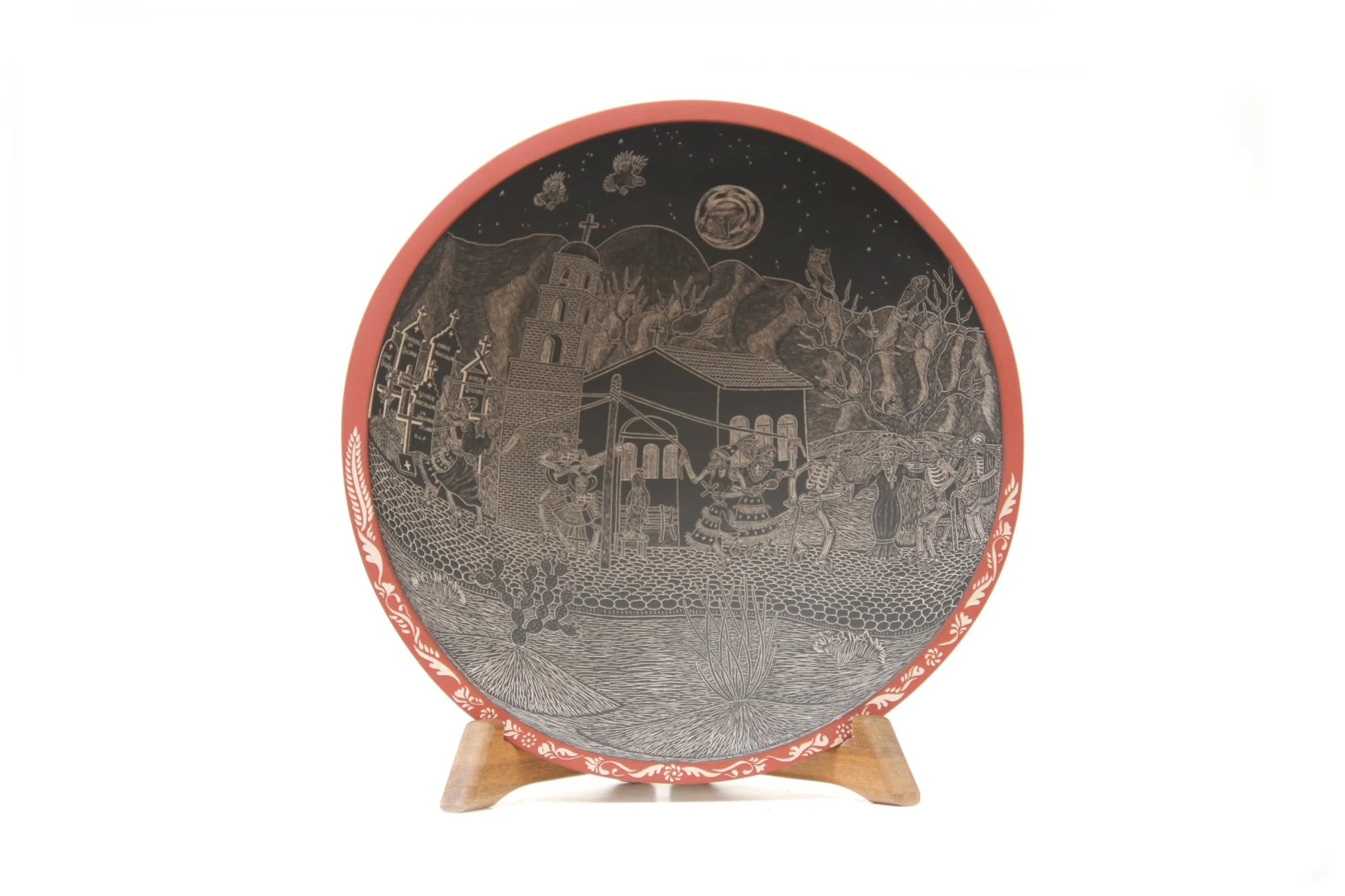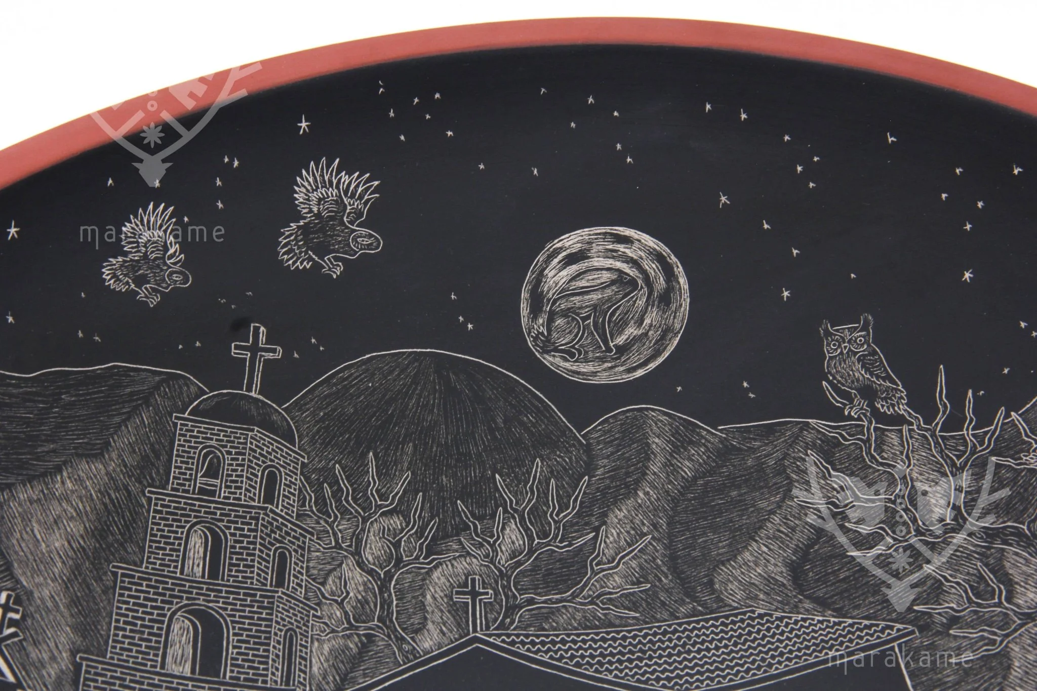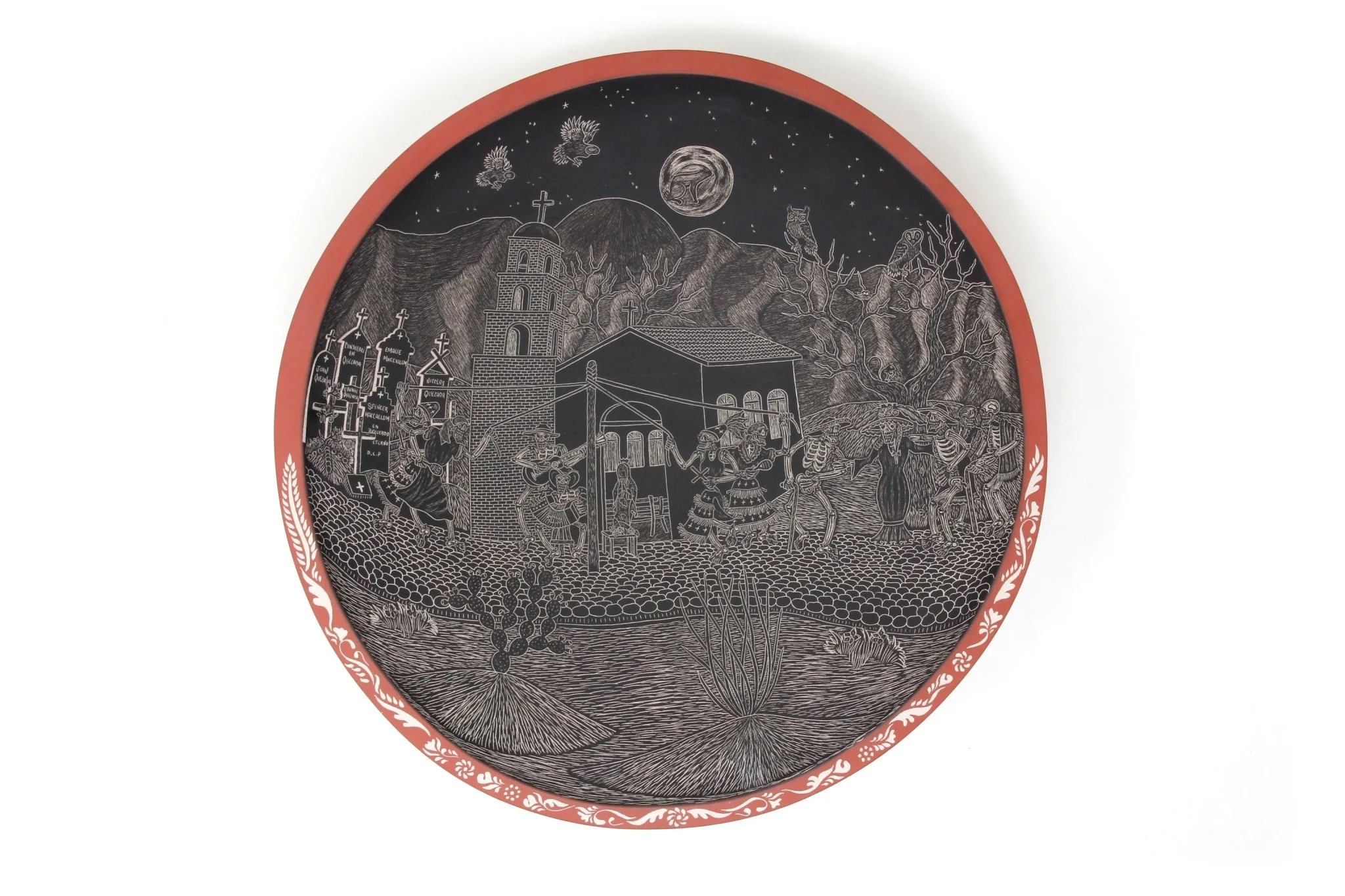 Cerámica de Mata Ortiz – Plato de Día de muertos – Conejo en la Luna de Noche