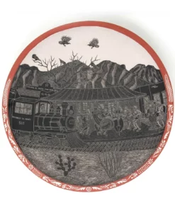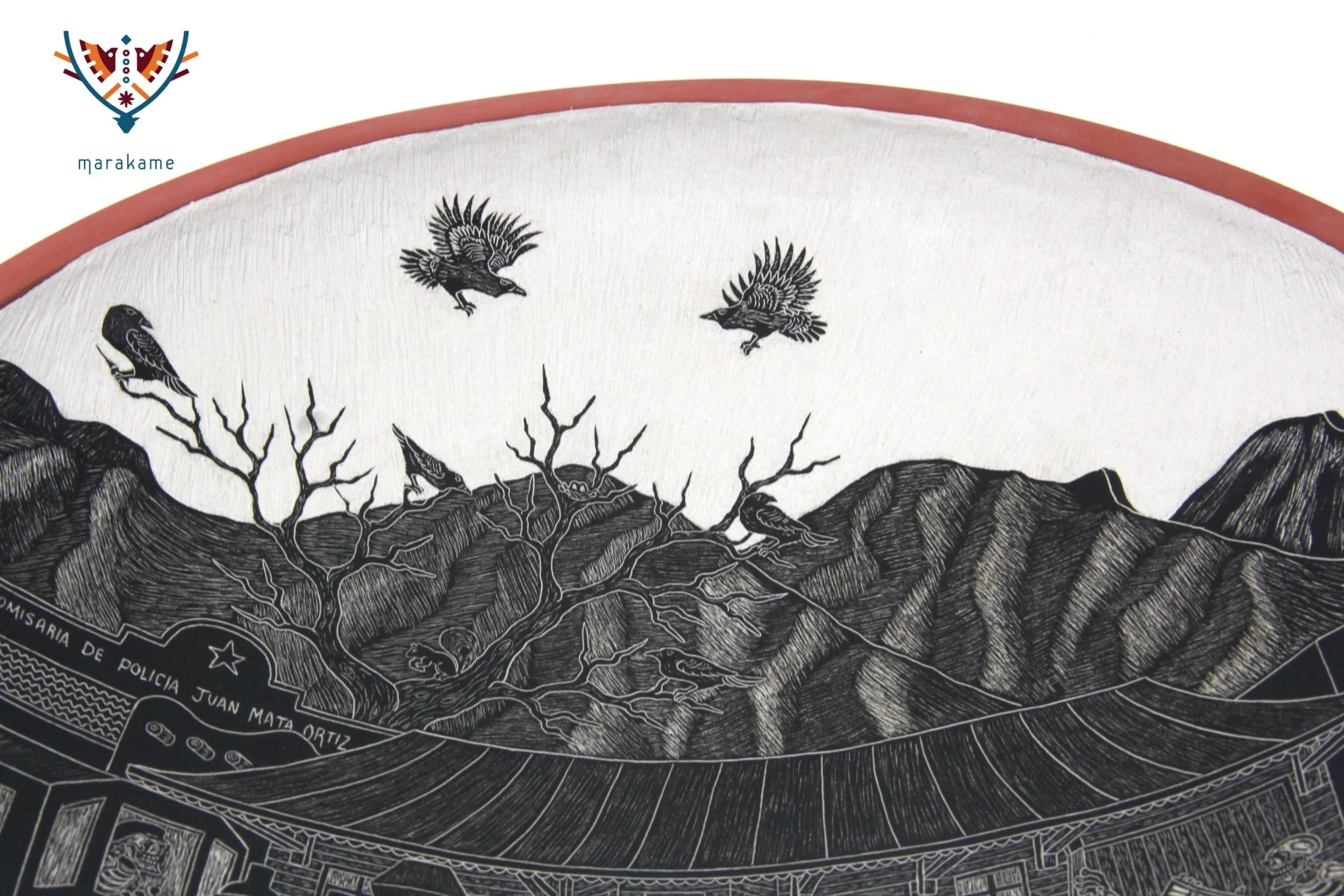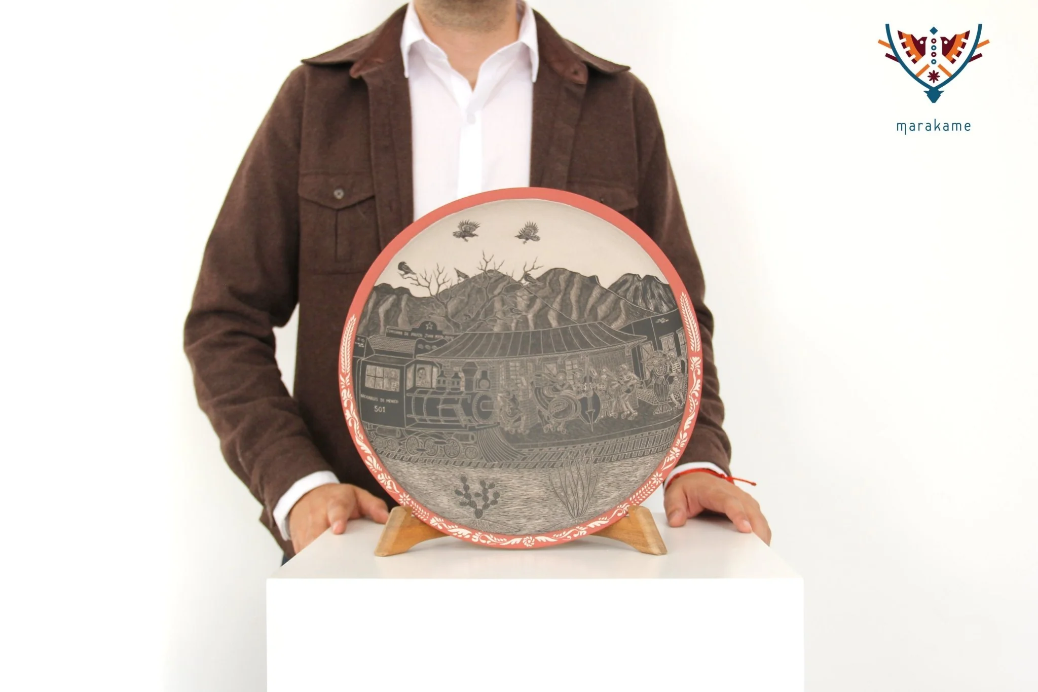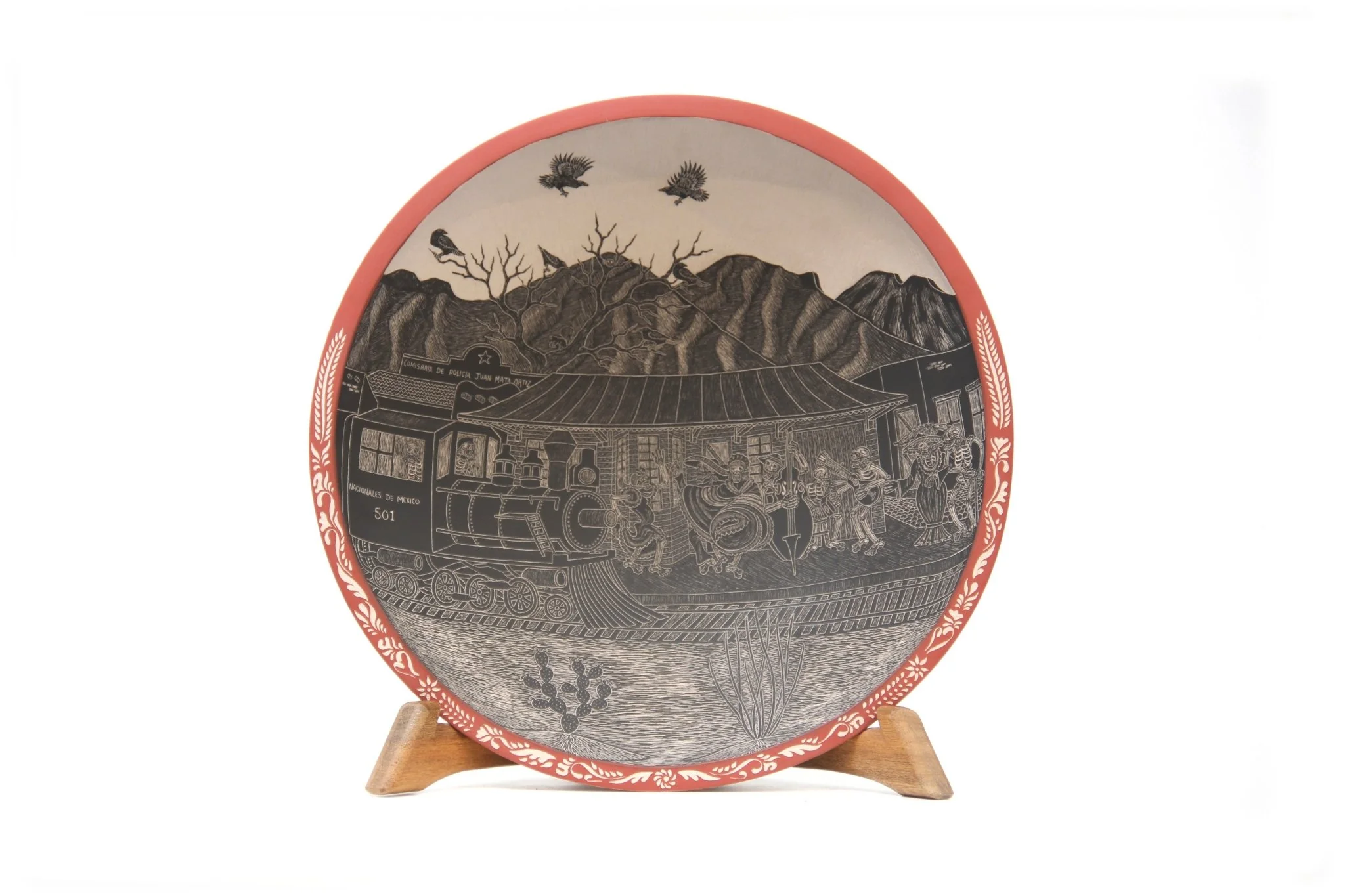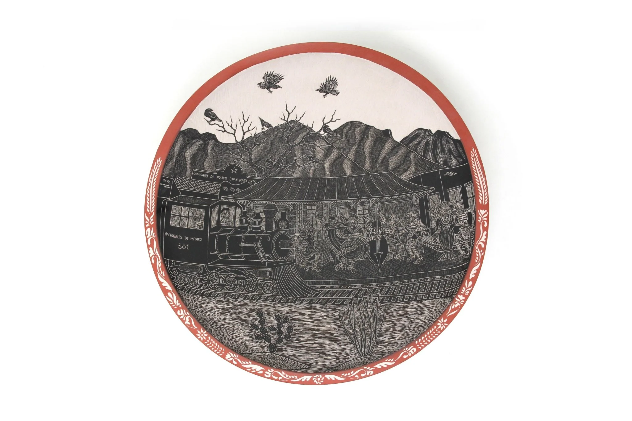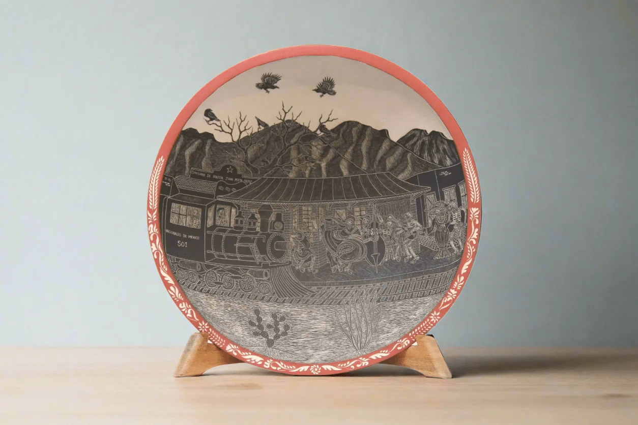 Cerámica de Mata Ortiz – Plato de Día de muertos – Ferrocarril de día