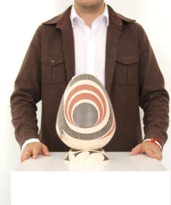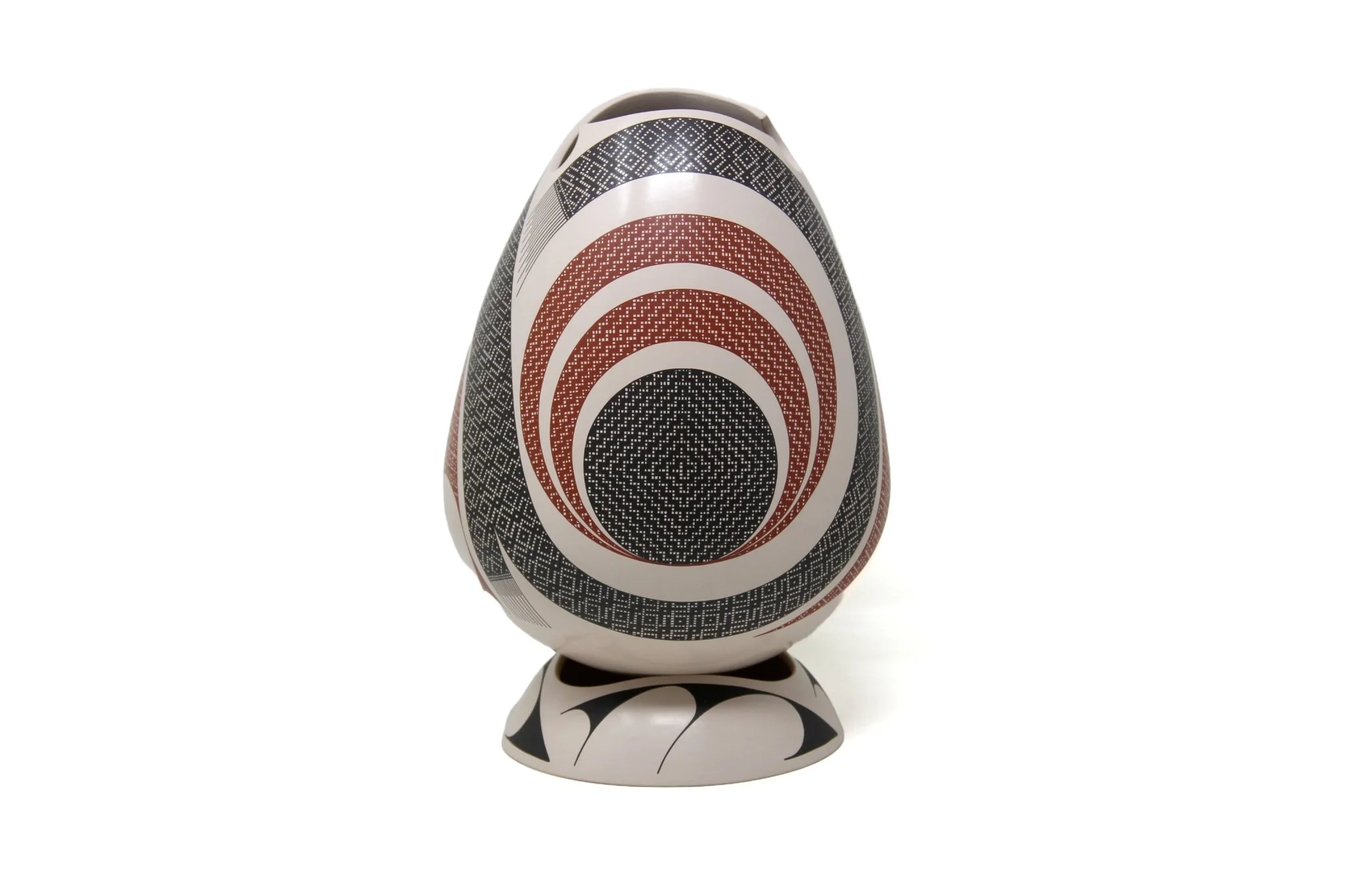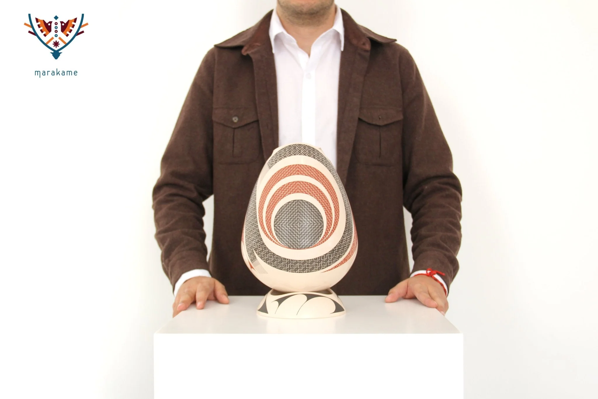 Obra dedicada al viento, a la espiral que dibuja un remolino y un juguete. La figura roja protagonista cuenta con su complemento al otro lado de la pieza: una forma circular emana arcos más grandes, sugiriendo profundidad y crecimiento. Así, los vientos del desierto se manifiestan en la cerámica, ofreciendo varias perspectivas de un mismo elemento natural, que es dador de vida.