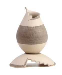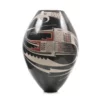 La escala grande de la pieza permite apreciar los detalles geométricos y los complementos en rojo de manera aún más detallada, creando un efecto visual que es difícil de olvidar. Esta obra de arte cerámica es un verdadero tesoro para cualquier coleccionista, una pieza única y especial que puede ser disfrutada por aquellos que aprecian el arte y la cerámica.