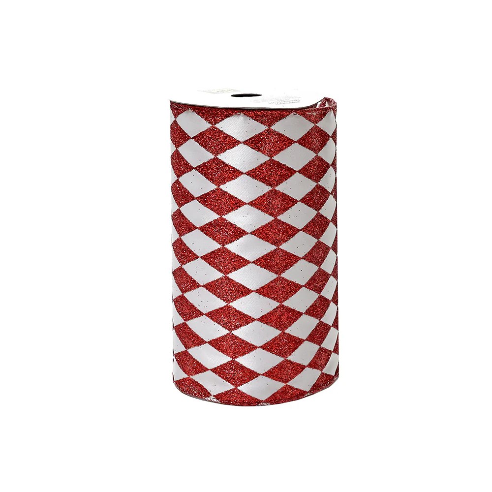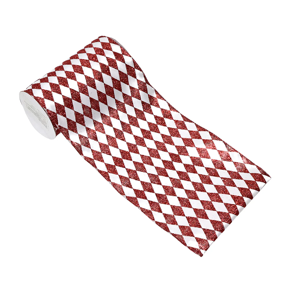 CR0037R Listón Rombos Rojo y Blanco 15 cm. x 4.57 mts.