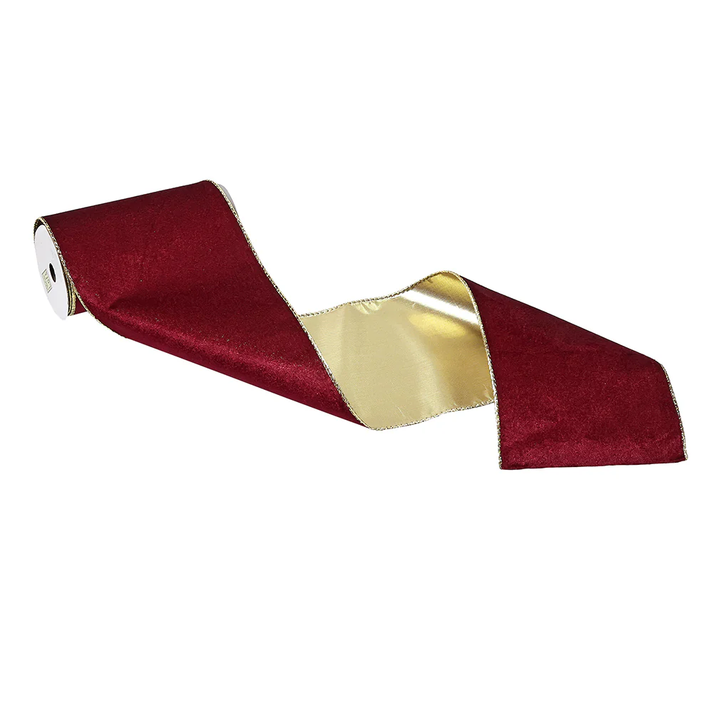 CR1049V Listón Terciopelo Vino y Oro 15 cm. x 4.57 mts.