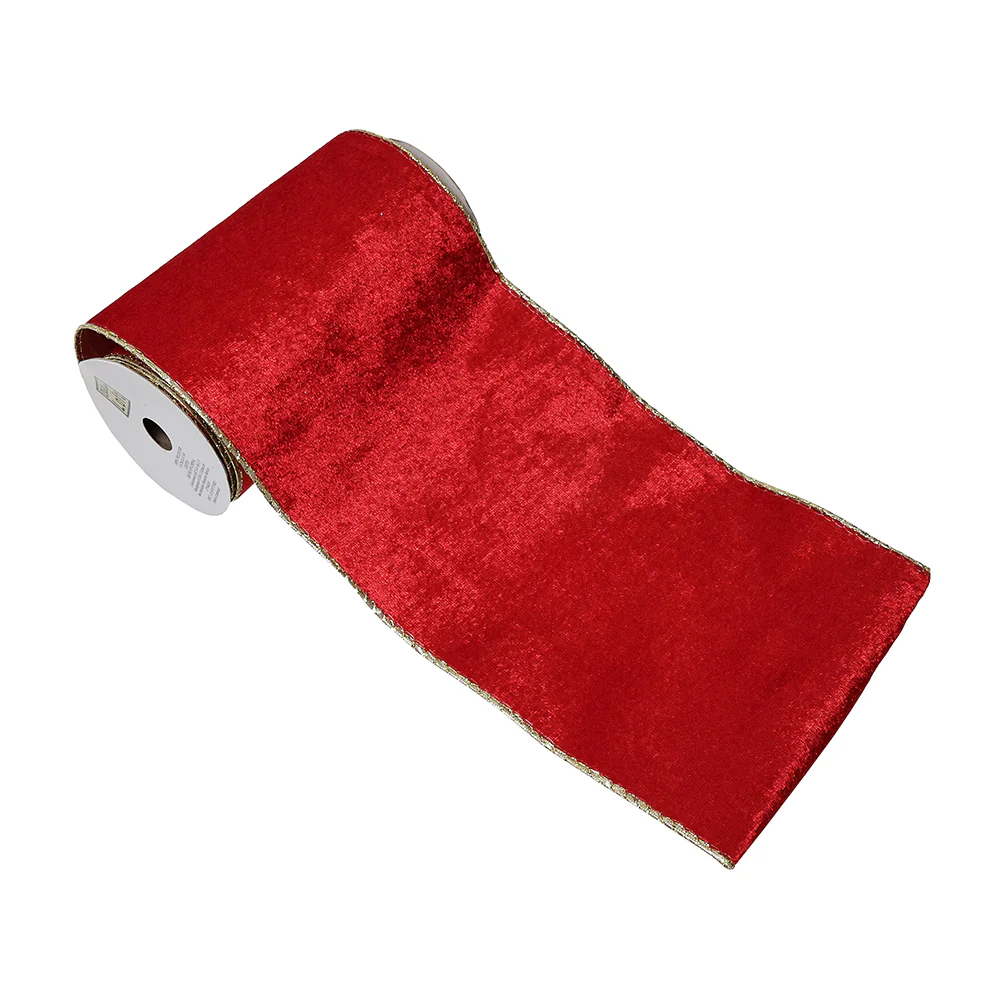 CR7213R Listón Terciopelo Rojo y Oro 15 cm. x 4.57 mts.