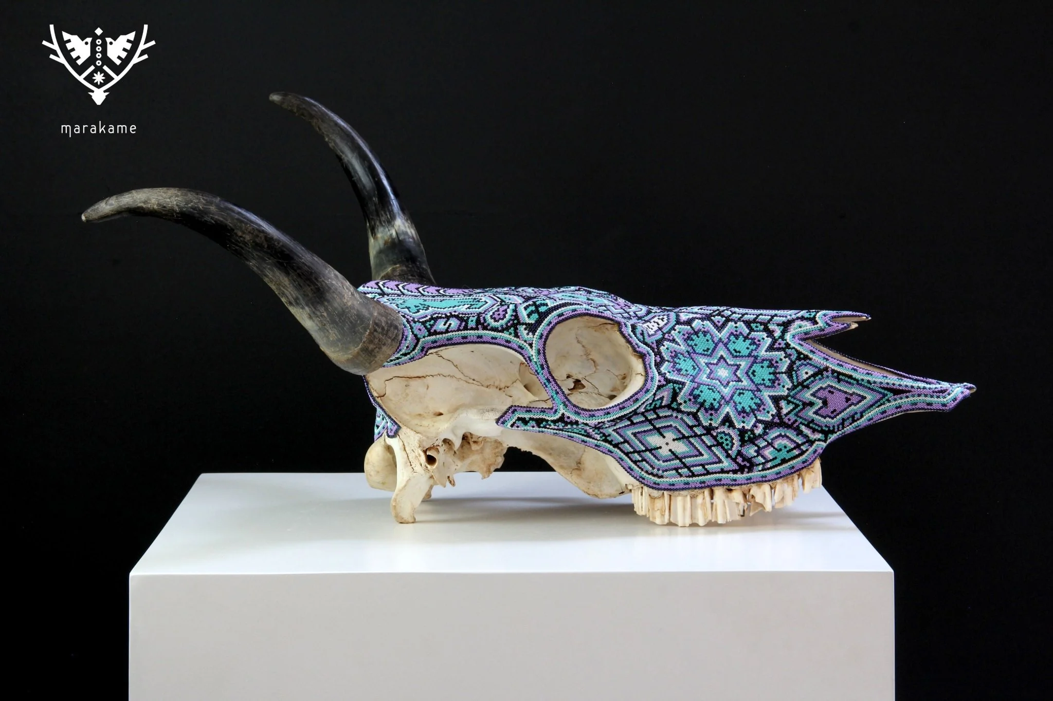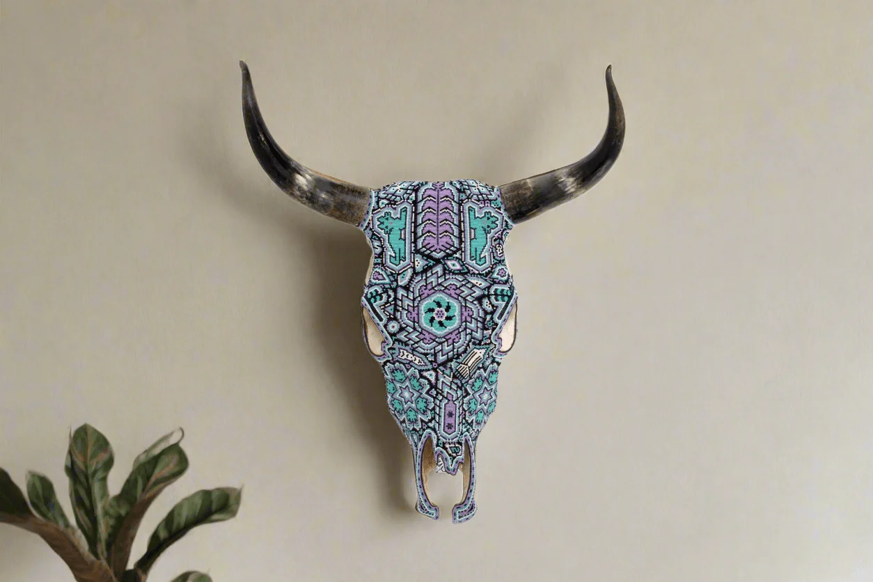 Cráneo de vaca Arte Huichol – Mayes