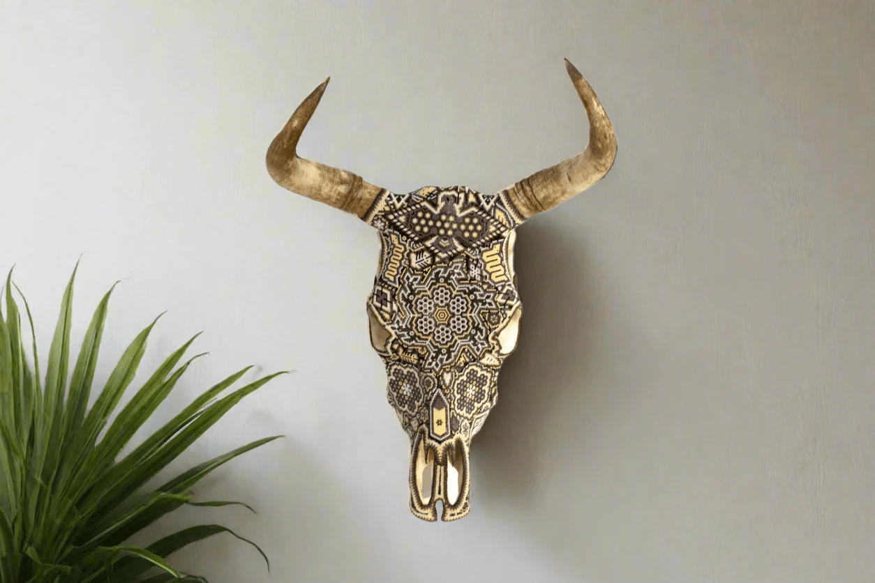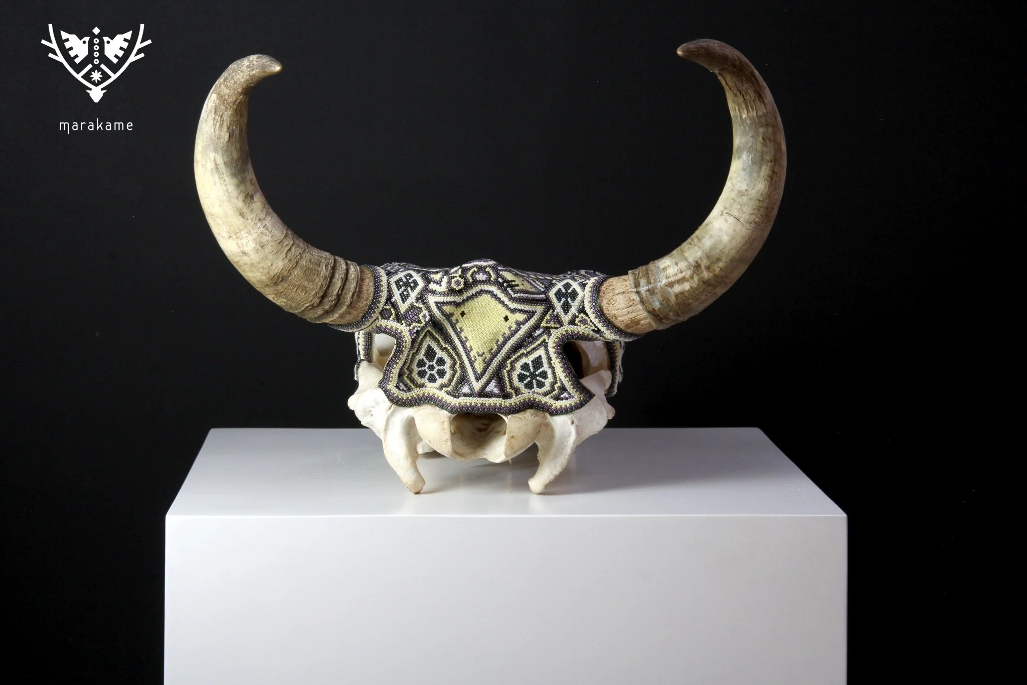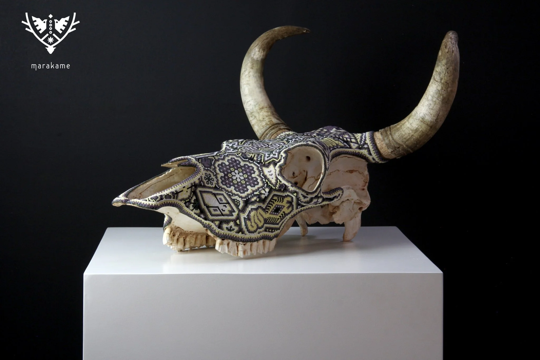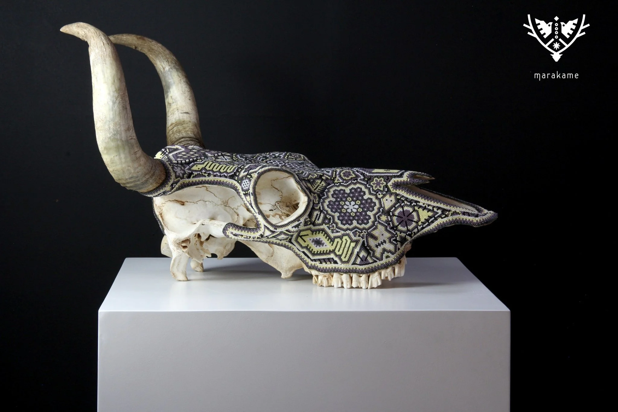 Cráneo de vaca Arte Huichol – Nierika miire II