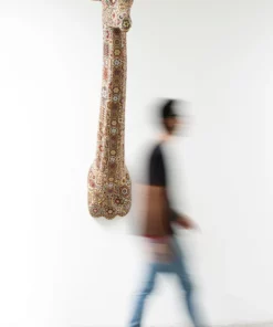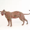 El arte de Ramona, Julia y María Elena de la Cruz López –tres artistas wixaritari de la comunidad de San Andrés Cohabita– se manifiesta en esta colaboración que realizan con Arte Marakame, en una ocasión especial que establece un terreno común entre la ciencia y las prácticas artísticas originarias. El soporte consiste en un molde de taxidermia –es decir, una figura que se obtuvo de un cuerpo real con intereses de conservación– enriquecido con ajustes elaborados desde una perspectiva escultórica, y finalmente trabajados colaborativamente entre tres hermanas que se ayudan entre sí para producir piezas de visible calidad y profundidad.