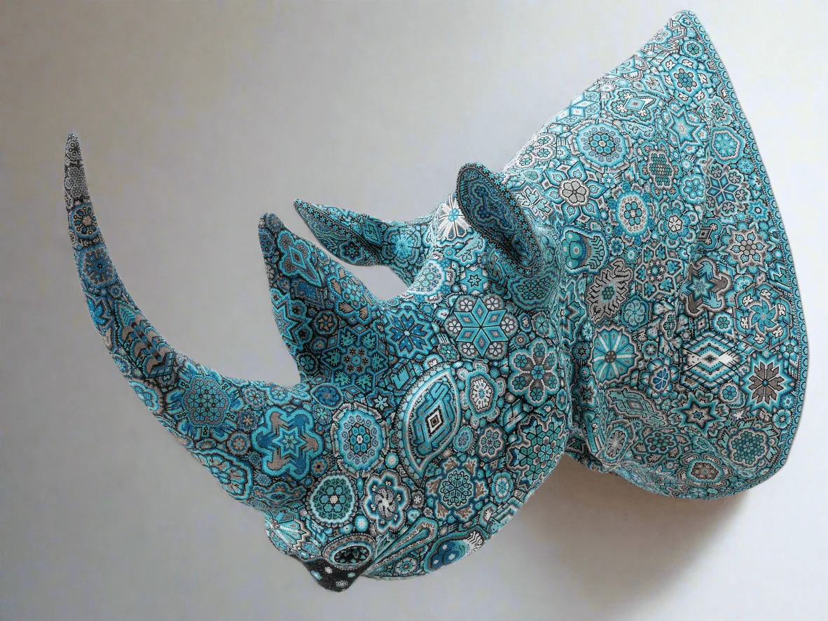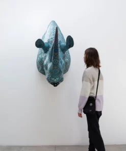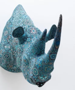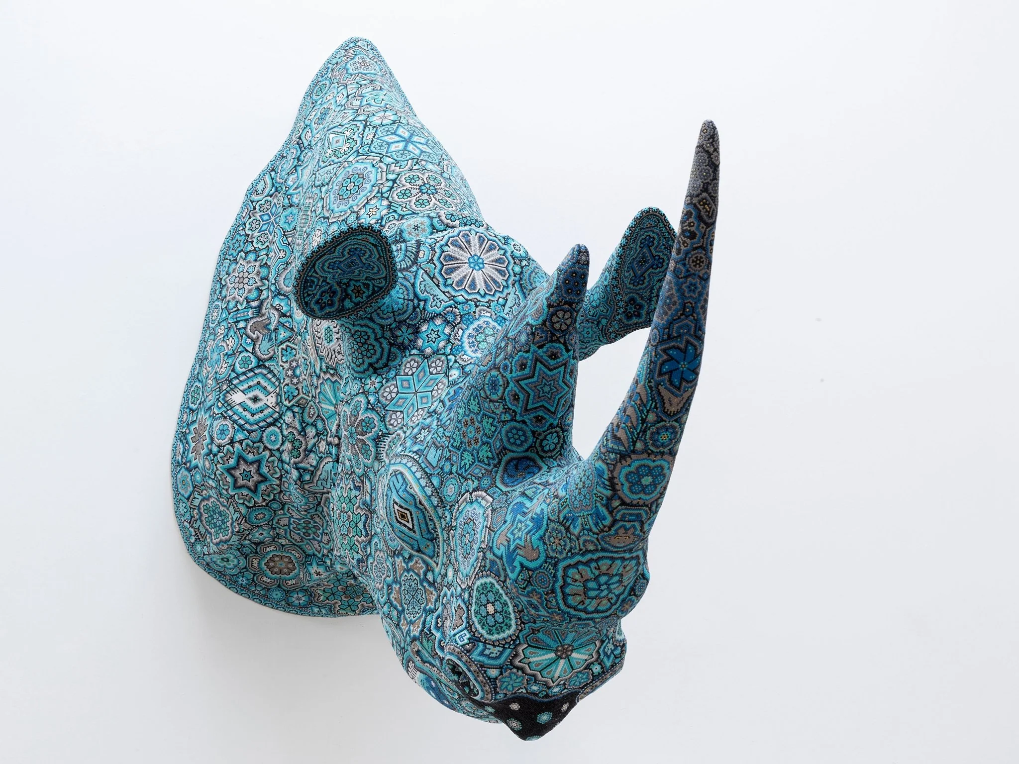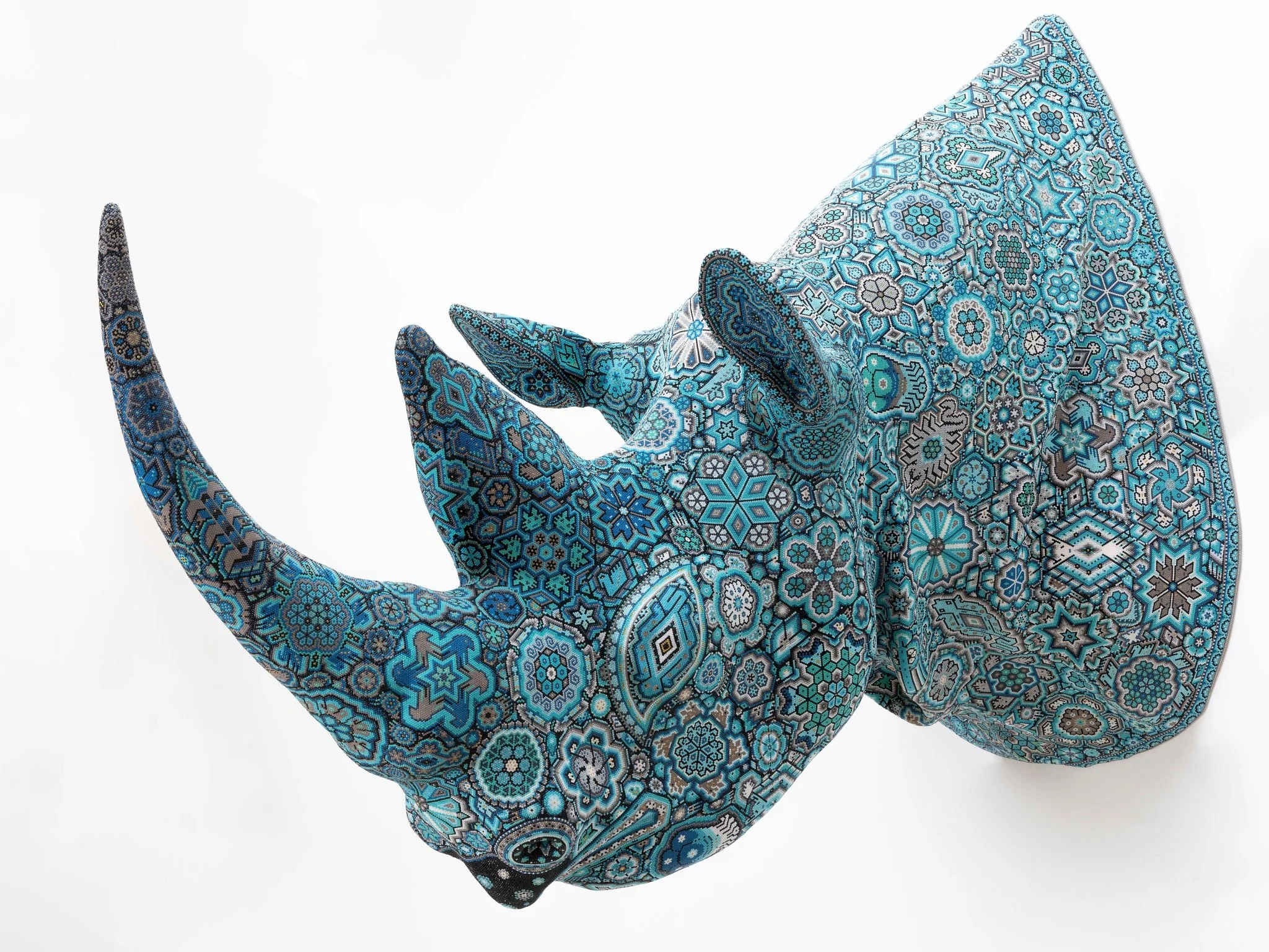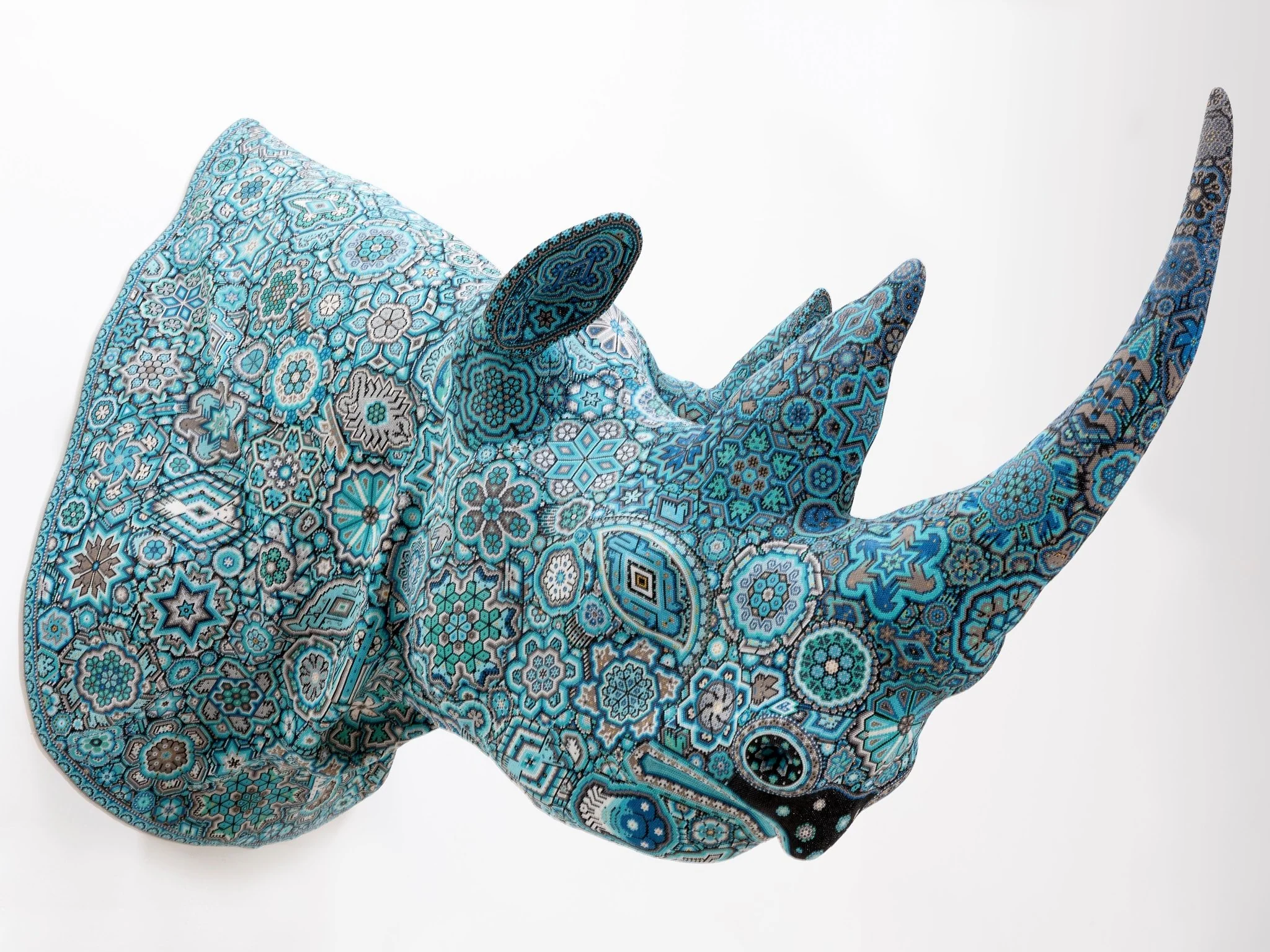 Escultura Arte Huichol – Cabeza escala real de Rinoceronte adulto – Hikuri