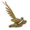 Los colores amarillos y rojos utilizados en la decoración le dan un toque de vida y energía a la pieza, mientras que los detalles en azul vibrante le agregan una profundidad y una dimensión adicional. La guacamaya sentada como apreciando la vista crea una sensación de tranquilidad y paz, como si estuviera disfrutando del momento y la belleza de su entorno.