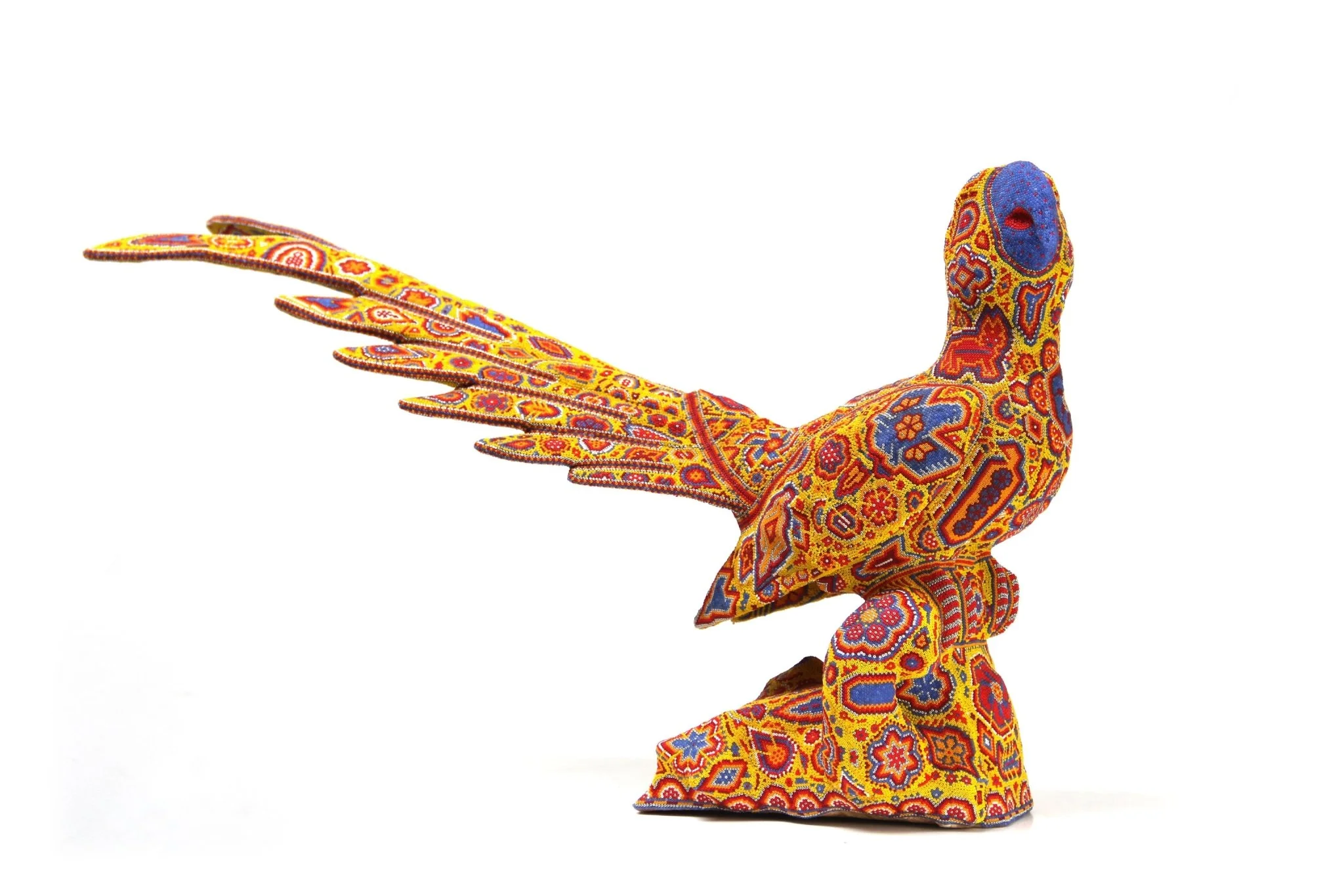 Marakame innova e integra las habilidades de los artistas Zapotecas, fusionando las piezas logradas por ellos con la destreza visual y manual de los Wixárika al pegar chaquiras de tamaño diminuto una a una, desde 20 mil hasta más de 500 mil (más de 80 mil en esta pieza), durante períodos que van de entre 15 y 300 días.