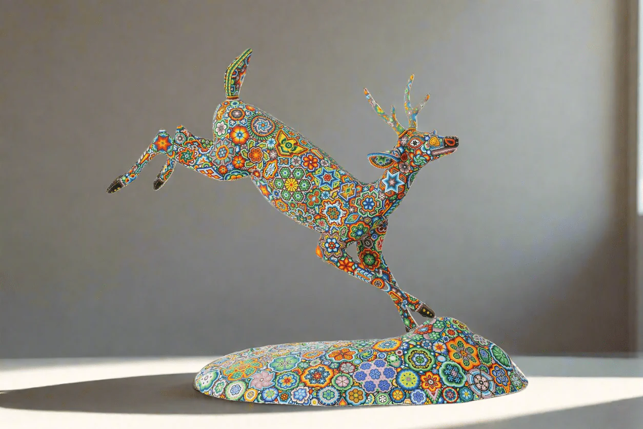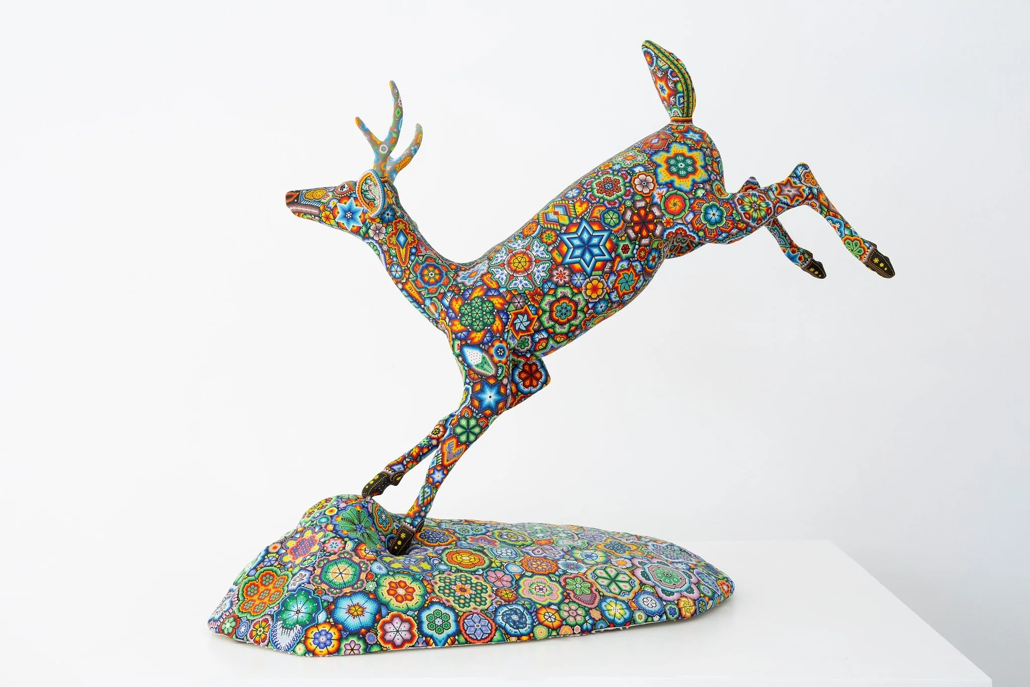 Escultura comisionada por el artista visual Fernando Motilla al taller de escultura de Arte Marakame, nace de la idea de un molde de taxidermia enriquecido con cuernos, orejas, ojos, para ser posteriormente forrado en vez de col la piel de un venado real, con un manto de cristales checoslovacos por meses de trabajo prensados en meditación activa por el artista visionario Luis de la Crúz de la comunidad wixárika de Tatéi-kie.
