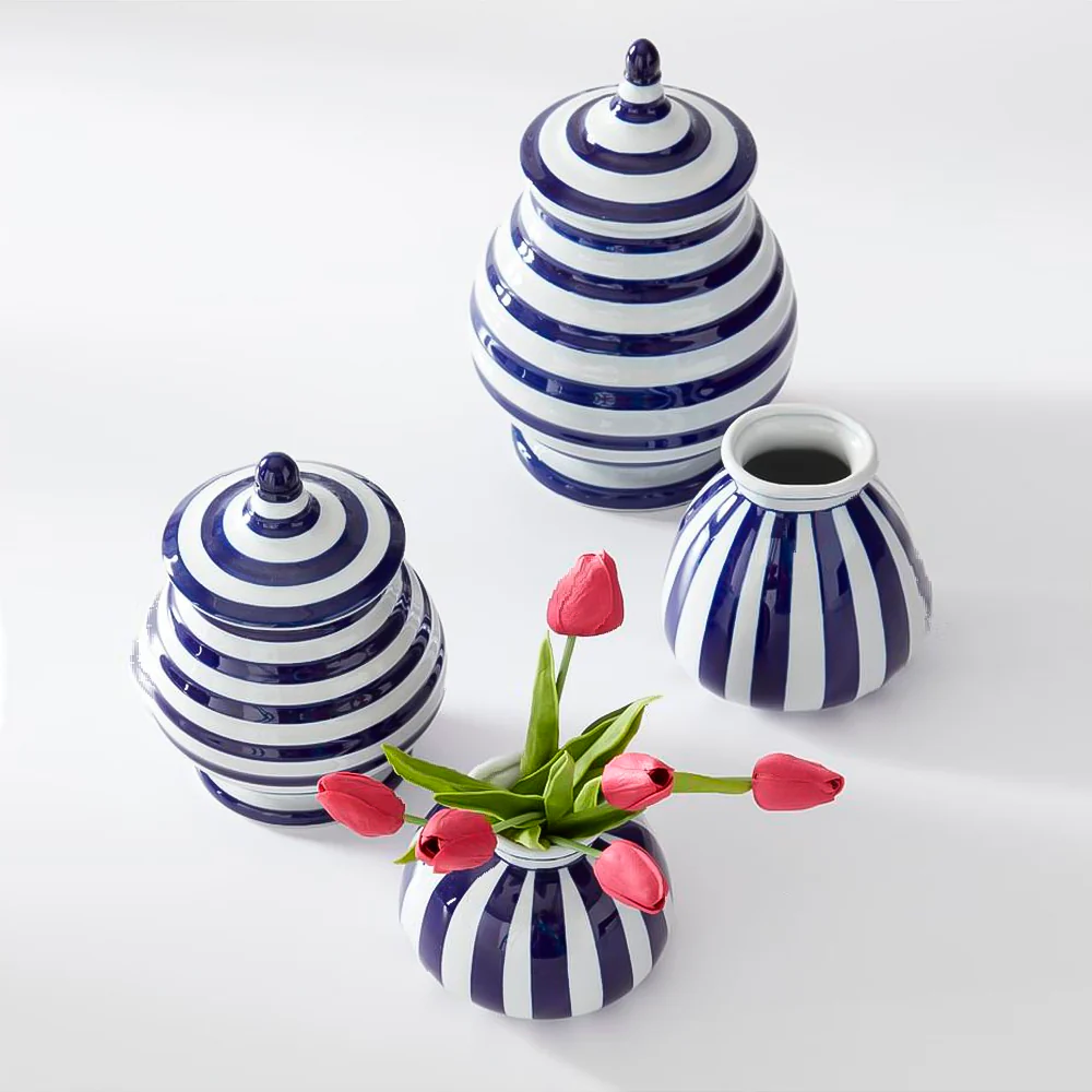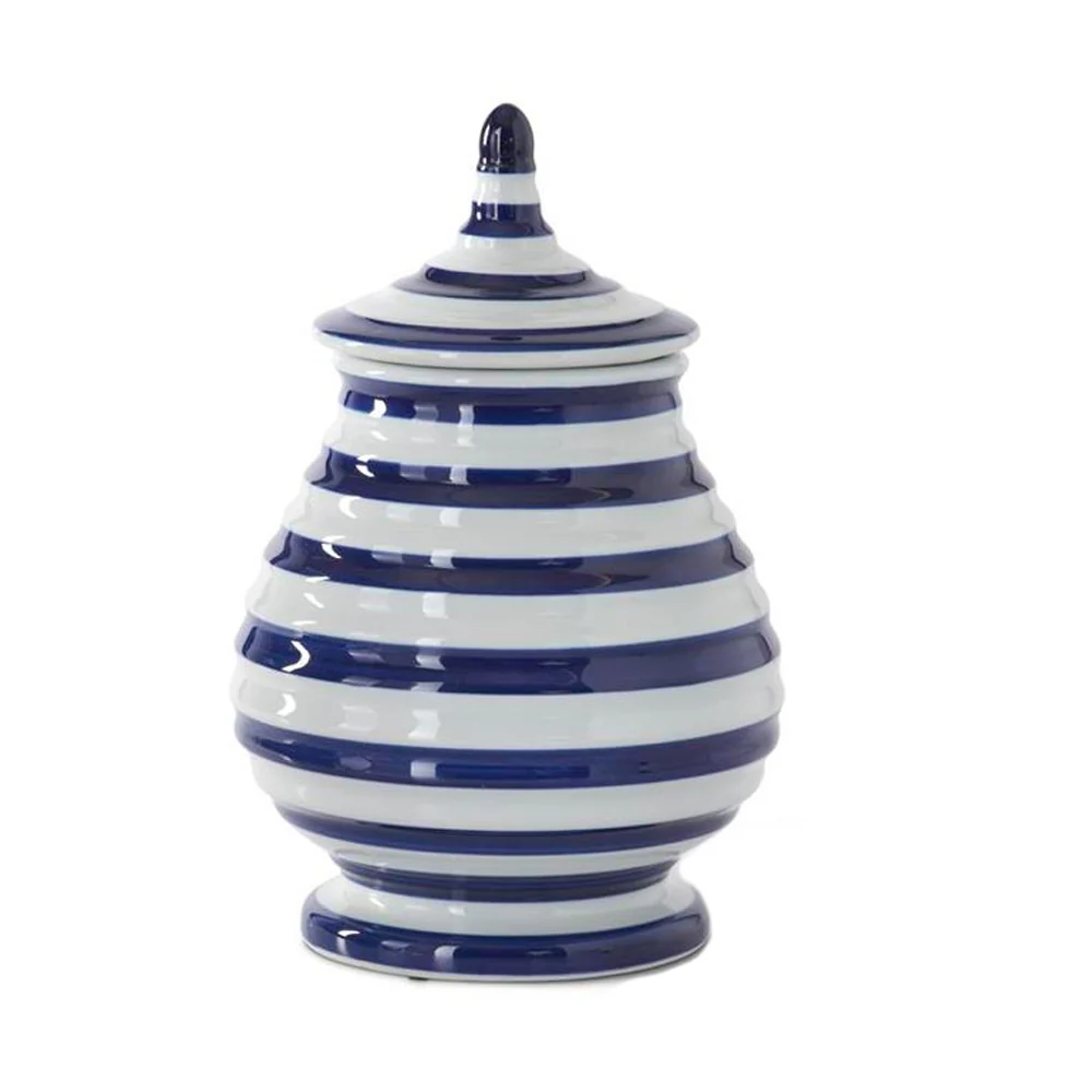JARRON DE PORCELANA BLANCA LINEAS AZULES GRANDE
