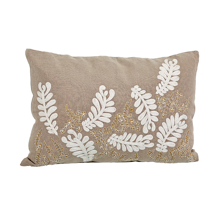 KC242935 Cojín de Lino Follaje Bordado 35×50 cm.