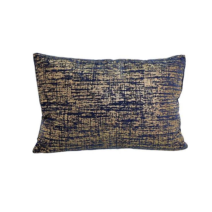 KC246235 Cojín Terciopelo Azul Acero Impresión Oro 35×50 cm.