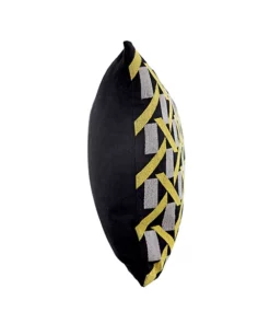 KC247335 Cojín Munich Negro Bordado Amarillo y Gris 35×50 cm.