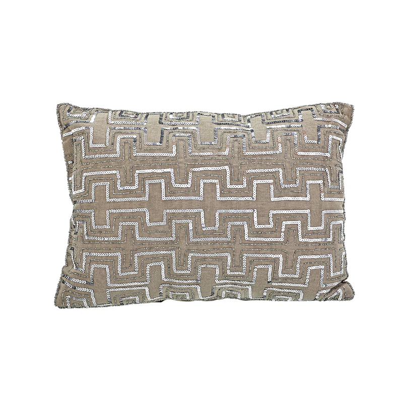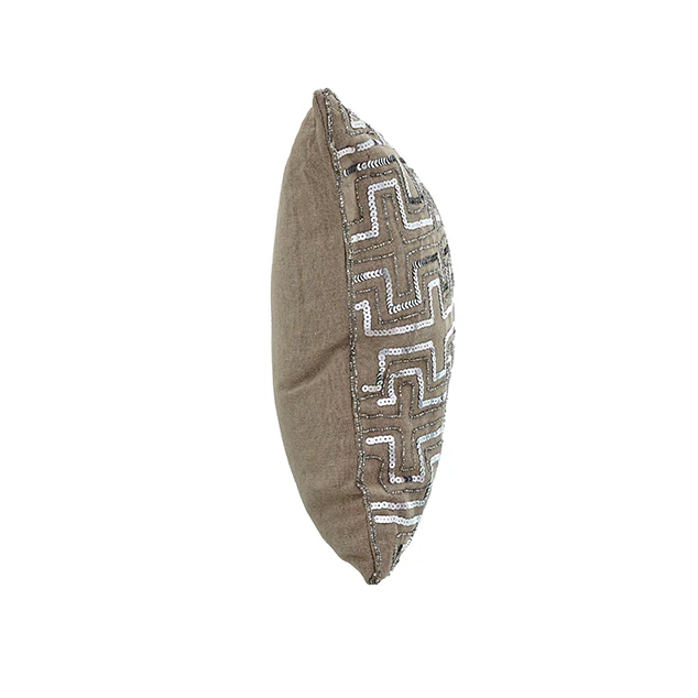 KC247735 Cojín Lino Pedrería Lentejuelas Plata 35×50 cm.