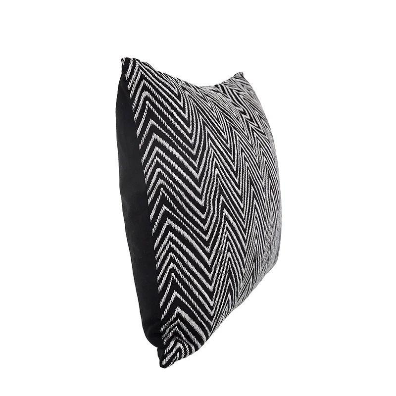 KC248535 Cojín Zig Zag Negro Bordado Plata 35×50 cm.