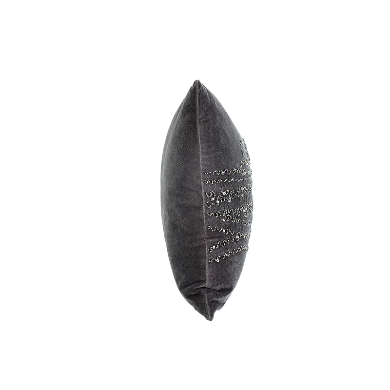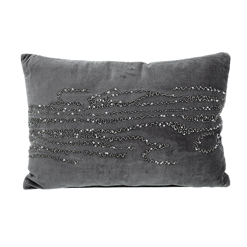KC248735 Cojín Kona Terciopelo Gris Pedrería Ónix 35×50 cm.