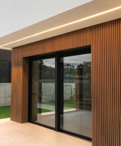 Lambrin Exterior Color Nogal SIN-11 El lambrín CO-ESTRUXIÓN WPC para exterior está compuesto por 60% de resina de madera y 40% HDPE Polímero de alta densidad. Resistente a cambios extremos ambientales, ideal para lugares con altas temperaturas y exposición al sol prolongada así como lugares fríos, con lluvia y nieve. Lo vendemos por pieza. Cada pieza mide: 2.9 m de alto x 20.1 cm de ancho x 26mm de grosor.