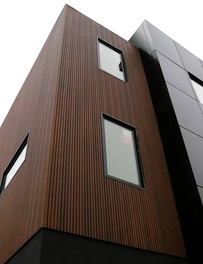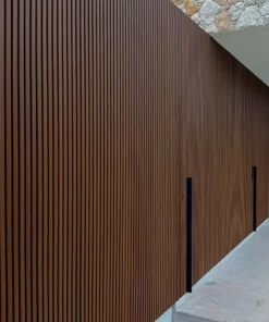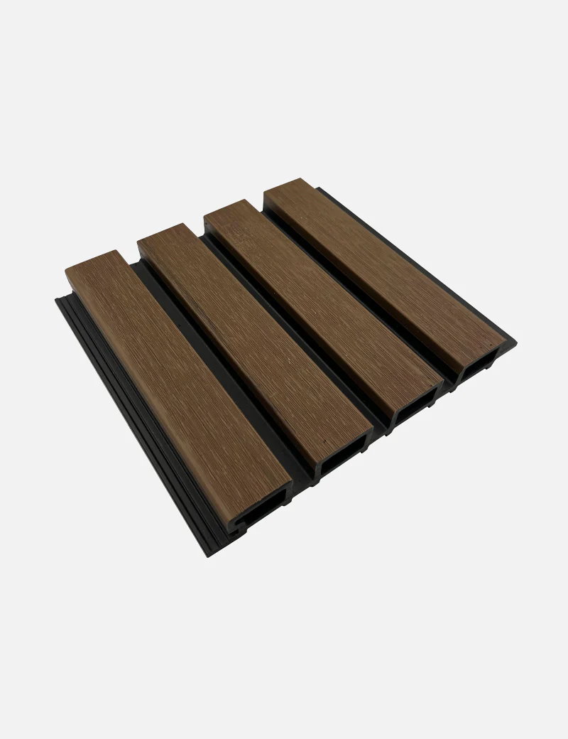 Lambrín Exterior Color Teca SIN-22 El lambrín CO-ESTRUXIÓN WPC para exterior está compuesto por 60% de resina de madera y 40% HDPE Polímero de alta densidad. Resistente a cambios extremos ambientales, ideal para lugares con altas temperaturas y exposición al sol prolongada así como lugares fríos, con lluvia y nieve. Lo vendemos por pieza. Cada pieza mide: 2.9 m de alto x 21.9 cm de ancho x 26mm de grosor.