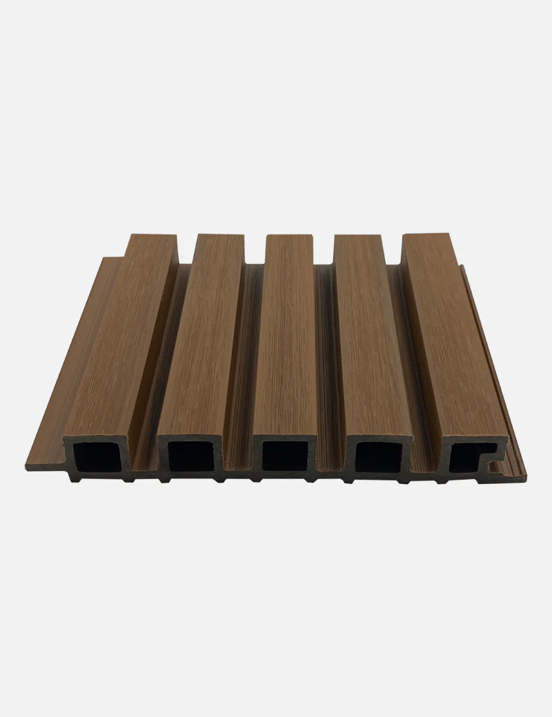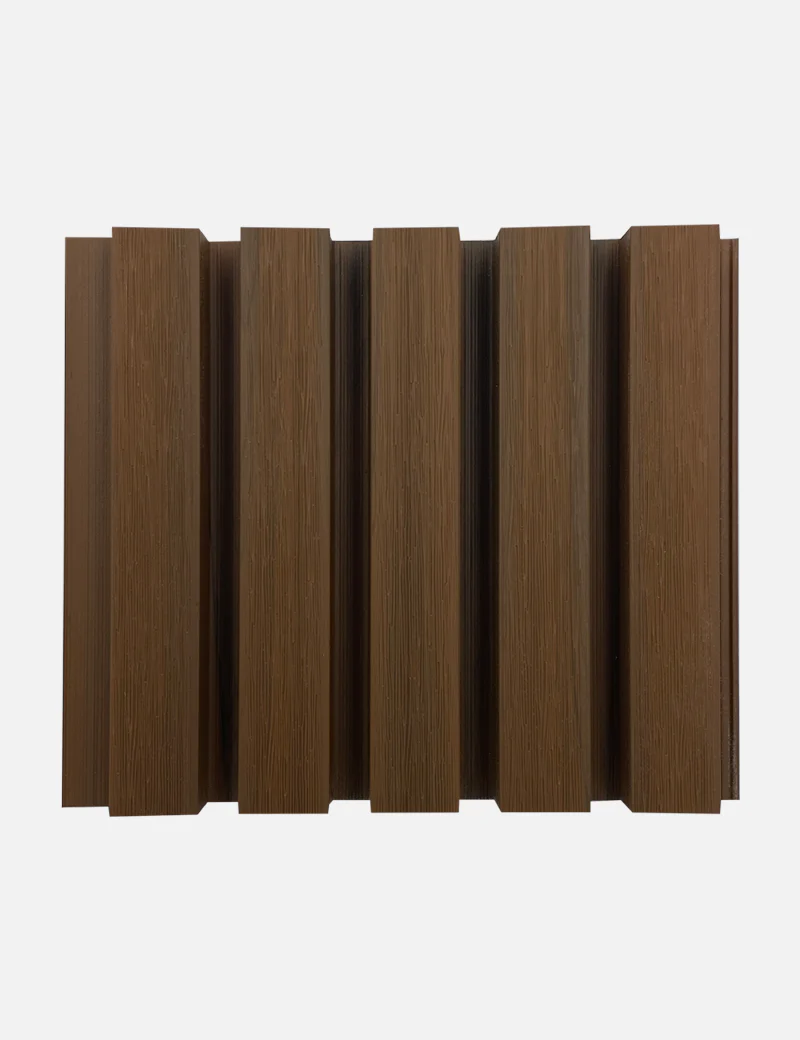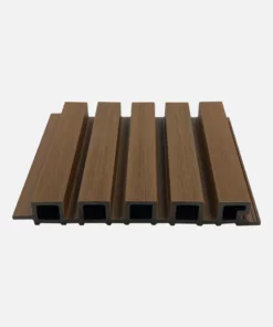 Lambrin Exterior Color Teca SIN-11 El lambrín CO-ESTRUXIÓN WPC para exterior está compuesto por 60% de resina de madera y 40% HDPE Polímero de alta densidad. Resistente a cambios extremos ambientales, ideal para lugares con altas temperaturas y exposición al sol prolongada así como lugares fríos, con lluvia y nieve. Lo vendemos por pieza. Cada pieza mide: 2.9 m de alto x 20.1 cm de ancho x 26mm de grosor.