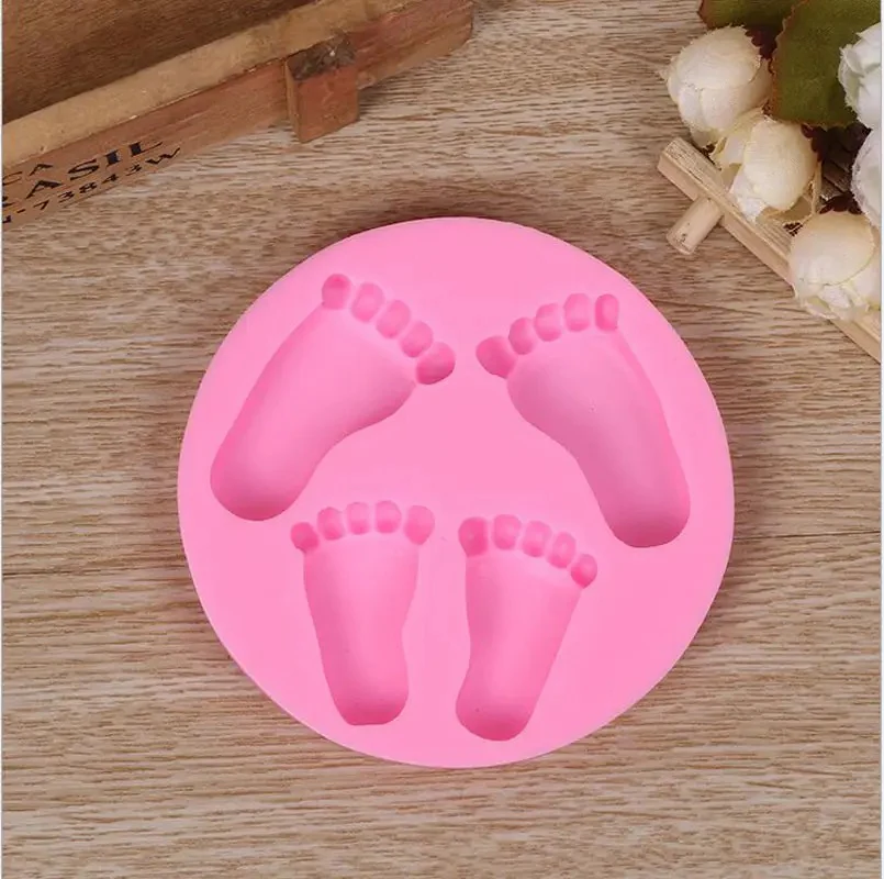 Molde de silicón de cuatro cavidades, los Piecitos grandes miden por cavidad 4.5 × 2 .5 x 0.7 cm