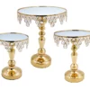 R736102 BASE P/PASTEL ORO REDONDA C/ESPEJO SET 3 PZAS 25 30 Y 35 CM