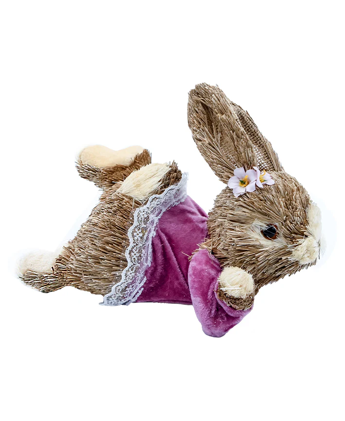 R738017-2 FIGURA CONEJO ACOSTADO NIÑA JUNCO 26X14X15CM