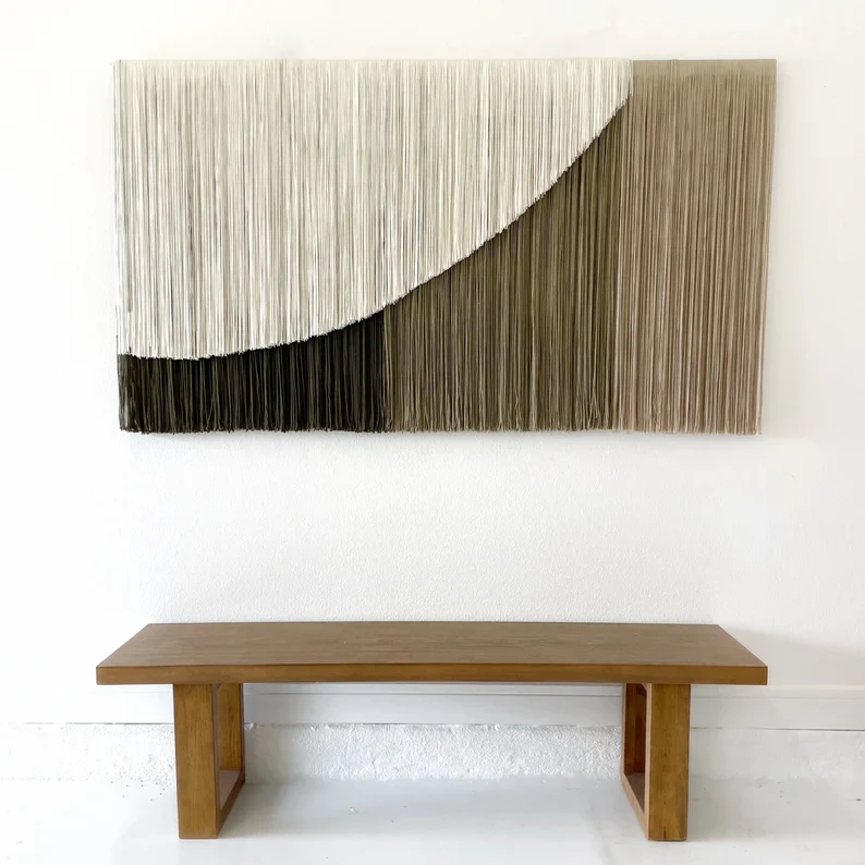 Decora con nuestro tapiz MODERN ART hecho de algodón y madera. Fabricado íntegramente a mano, por nuestros artesanos en Yucatán, México.