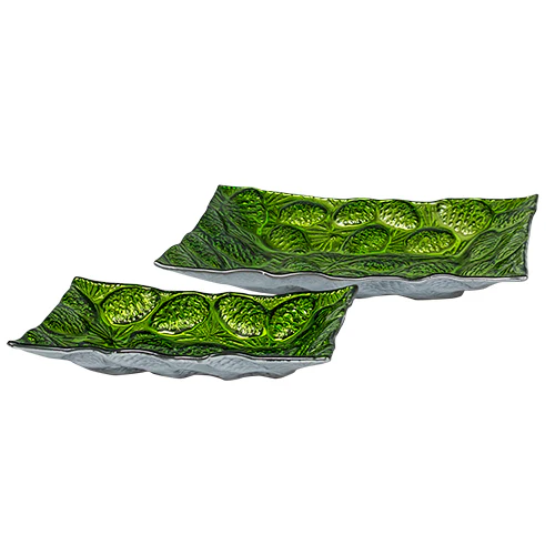 YQ751 Platón Rectangular Piñas Verde 24 cm